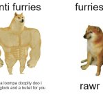 Anti furries furries oompa loompa doopity doo i have a glock and a bullet for you rawr
