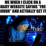 ME WHEN I CLICK ON A SHADY WEBSITE SAYING "FREE ROBUX" AND ACTUALLY GET IT: