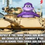 REPOST IF YOU THINK COOKIE RUN MEMES ARE CRINGE AS HELL, COMMENT IF YOU LIKE TEA OR IGNORE YOUR COOKIE RUN FAN RIGHTS