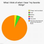 What I think of when I hear "my favorite things" | The lyrics from that one song in the Sound of Music, The world, Sleep, Memes, Food, Thing...