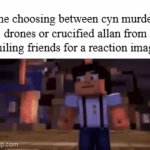 me choosing between cyn murder drones or crucified allan from smiling friends for a reaction image