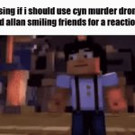 choosing if i should use cyn murder drones or crucified allan smiling friends for a reaction image