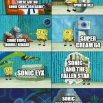"THERE ARE NO GOOD SONIC FAN GAME" SONIC.EXE THE SPIRIT OF HELL SONIC TRIPLE TROUBLE REMAKE SUPER CREAM 64 SONIC.EYX SONIC AND THE FALLEN ST...