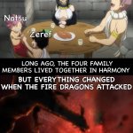 Natsu Zeref Mom Dad LONG AGO, THE FOUR FAMILY MEMBERS LIVED TOGETHER IN HARMONY BUT EVERYTHING CHANGED WHEN THE FIRE DRAGONS ATTACKED