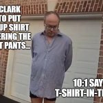 SO JEFFERY CLARK TOOK TIME TO PUT ON A BUTTON-UP SHIRT BEFORE ANSWERING THE DOOR...BUT NOT PANTS... 10:1 SAYS HE'S A T-SHIRT-IN-THE-POOL GUY...