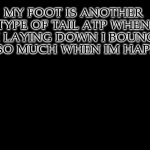 MY FOOT IS ANOTHER TYPE OF TAIL ATP WHEN IM LAYING DOWN I BOUNCE TS SO MUCH WHEN IM HAPPY