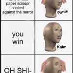you have have a rock paper scissor contest against the mirror you win OH SHI-