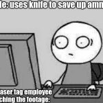 Me: uses knife to save up ammo The laser tag employee watching the footage: