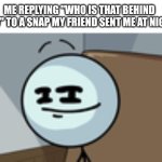 ME REPLYING "WHO IS THAT BEHIND YOU" TO A SNAP MY FRIEND SENT ME AT NIGHT