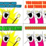 WOO HOOO I WON THE AWARD FOR MOST UGLY YOU REALIZE THAT'S A BAD THING RIGHT!! EVEN BETTER!!!! WOOOOOOOOOOOOO
