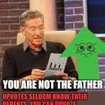 THE RESULTS ARE IN YOU ARE NOT THE FATHER UPVOTES SELDOM KNOW THEIR PARENTS. YOU CAN UPVOTE NOW AND BE PART OF THE SOLUTION