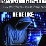 Telling my friend to install hacks
