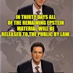 For some reason it takes 30 days after Trump signed the bill -- or the release or whatever -- before anything can actually be released to the public. I don't know why.