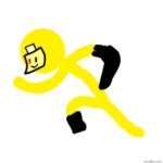 A yellow stickman with a sticky note drawing "Music: On. Jerk: Off"