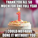 I can’t believe it’s been a full year. Thank you to everyone who has commented and upvoted my memes.