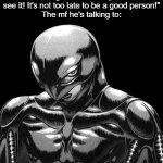 So basically, Steven Universe is known for using his talk no-jutsu for whenever he's facing villains, and it usually works bc plot armor. However, Griffith/Femto (the guy shown in the picture) is known for being an irredeemable piece of shit, not exactly someone you can just talk down.