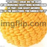 Yeah, ppl usually say this to act morally superior because they are able to study for tests. I put the cornball image bc lowkey no one cares