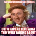 this is just a meme that relates to me when Im in class and I don't understand what the task is that where doing, and/or if I get distracted and im completely lost .this also describes me when I just don't care. something I can do to help me stay on task is get more involved in class, and ask more questions
