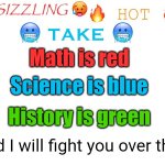 The colors school subjects are...
