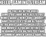 Please join the retro-games stream! Link in comments!