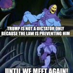 I never called Trump a dictator in the first place, it's true he was never a dictator to begin with because he is an elected president but even though I supported him I wouldn't put it past him to try and make himself president for life if he could and there weren't laws in place such as term limits. Trump even made "Trump 2028" hats. If Obama did such a thing, you'd be screaming "dictator" at him, in fact you were screaming that at him just for existing, you're just as bad as the anti-Trump left.