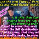 Yep too true. What I find kinda sad is how movies / TV shows now have to have some sort of political message and sadly this is why many of these companies, will end up folding.