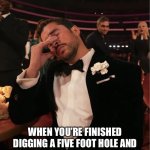 In Holes, you have to dig 5 feet deep, and 5 feet wide holes everyday under the hot blazing sun. And when the characters finished digging the holes they are relieved after digging the holes, but when Mr Sir ( one of the counselors ) come and tell you that your hole isn’t deep enough, so you still have to dig more when you wanted to have a break off.