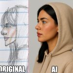 I used AI to see how my drawing would look like in real life. She is half white and half brown. More specifically she is half Swedish and half Trinidadian. I recently started experimenting with AI in the area of seeing how it can bring my art to life and make my art an actual person. I get lonely sometimes and need some friends so using AI to bring my art to life makes me feel less alone.