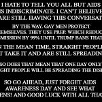 No one has the right to tell anyone else what they can or can't do with their own body... Unless your doing it in front of someone else and forcing them to watch! Lots of people do... Don't you understand that you've been indoctrinated into a cult? One that is loyal to a man, not their country anymore. He is taking more and more power and each one of you will be responsible for the slaughter that is to come. As he get's us into wars that we didn't ask for. But you did. Now how many peoples children will die in war because you wanted to throw a finger in our faces. Thank you.