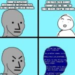 You can see this phenomenon here on Imgflip as well. Lately I've noticed that a majority of the right-wing users on here are at least somewhat active on a couple of other streams and make lots of entertaining non-political posts as well, whereas most left-wing users seem to dwell exclusively in political streams. In fact, the number of leftists on this website who post non-political stuff at least occasionally that I'm aware of can be counted on one hand.