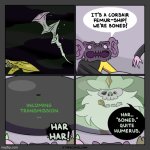 I'm hoping for the former, because it would be sad that Sirius gets left behind. They're the third* character to get this fate, the first two being AN-2E and Moon the cow, after the Torus Tauruses kidnapped Moon.