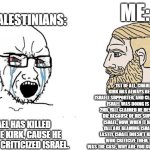 The thing is, Hamas is putting Palestinian political opponents in prisons in Gaza, and so did the PLO in their time, so your sarcasm really isnt far off of what the Palestinians did, and i dont see you outraged. And no Israel hasnt jailed innocent Palestinians in the west bank, rather actual suspected confirmed terrorists, please educate yourself.