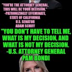 Bondi is giving the middle finger to a two tier justice system, as was allegedly employed within the lawfare actions by Obama and Biden on the behest of the likes of the Clintons.