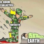 Soldier protecting sleeping child