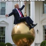 He does the best for the country in my opinion, a Ballroom instead of a basketball court, fair tariffs for a level playing field, blowing up terrorists to include drug dealers who poison our children, women only in women's sports, not wanting children mutilated until they turn 18, school choice! I give him a 10 out of 10!!!!
