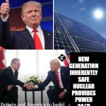 Even the new fission plant design is inherently safe, 1/10th the size of previous generation type, 1/3rd the power and inherently safe, cannot melt down. 24/7 power, therefore solar and wind near worthless since does not work 24/7.